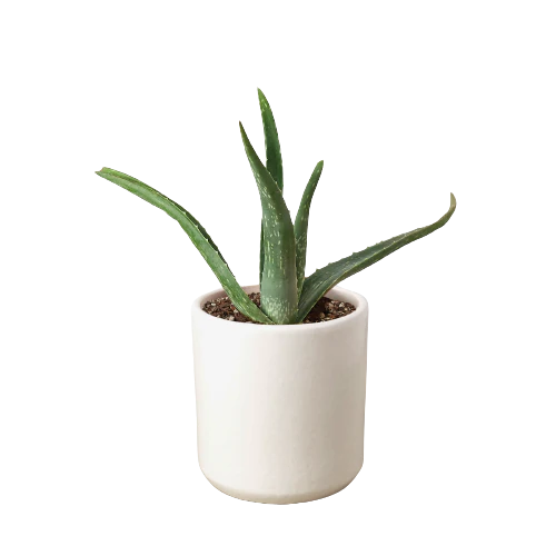 - Description: The Aloe Vera is a stemless succulent with thick and fleshy leaves that are lined with small teeth making it a great ornamental, low maintenance indoor plant which blooms a yellow tubular flower in the summertime. Native to the Arabian Peninsula, this plant is widely used around the world as its leaves are considered to be antimicrobial and has been used to treat burns as a topical medication.