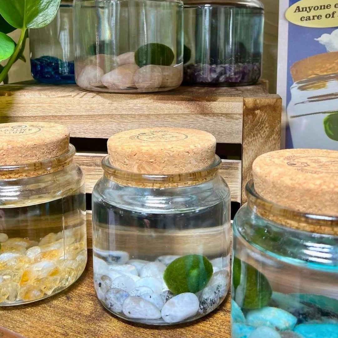 . All our Moss Amigos are hardy, easy to maintain, and perfect for your busy lifestyle. Each new Amigo comes with a durable 16 oz. glass container, a supple cork lid, and stones of your choice.
