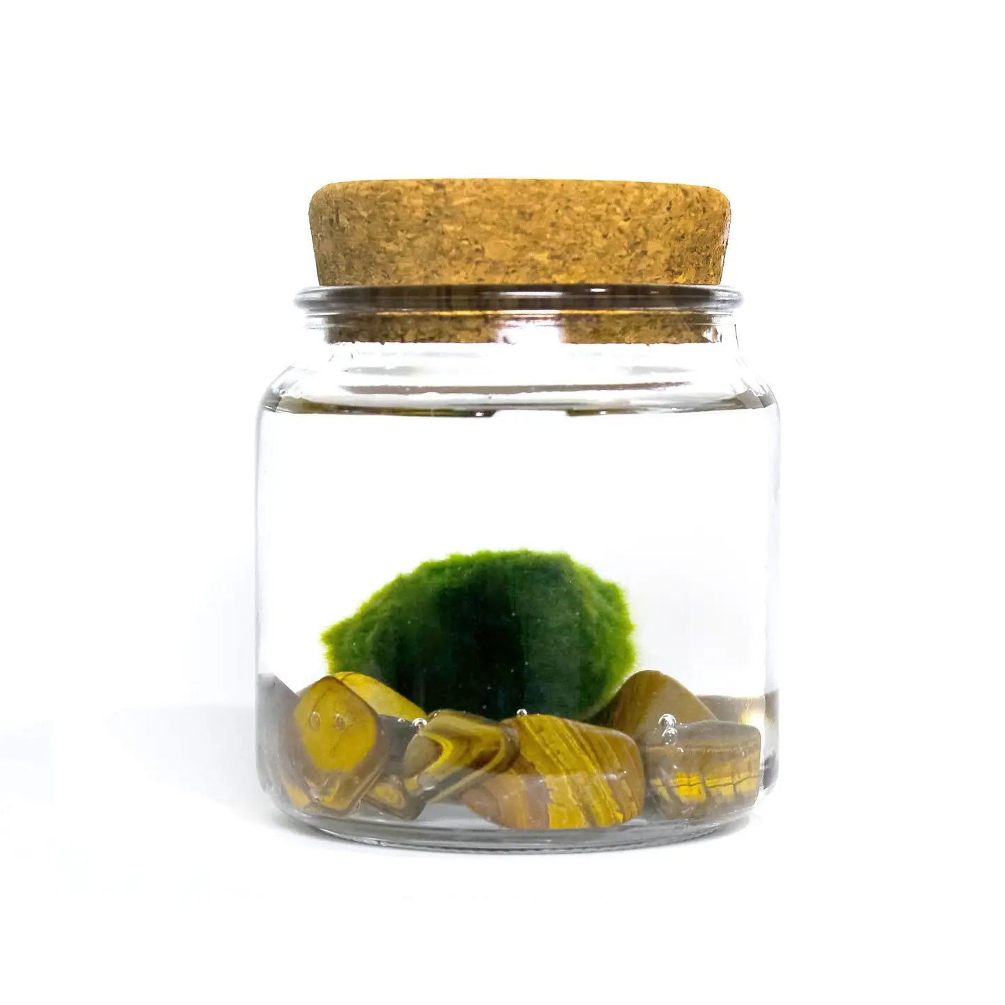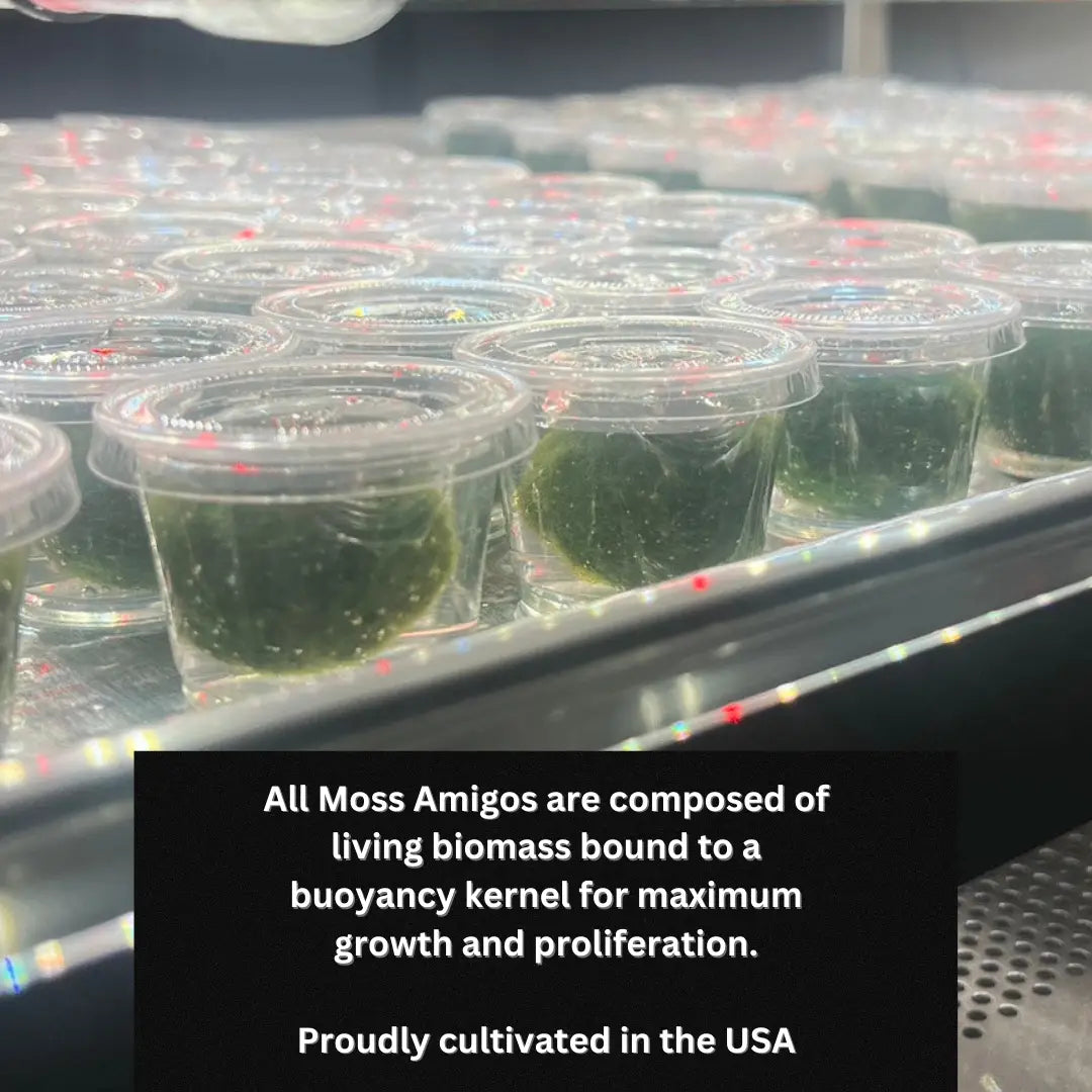 - All our Moss Amigos are hardy, easy to maintain, and perfect for your busy lifestyle. Each new Amigo comes with a durable 16 oz. glass container, a supple cork lid, and stones of your choice.
