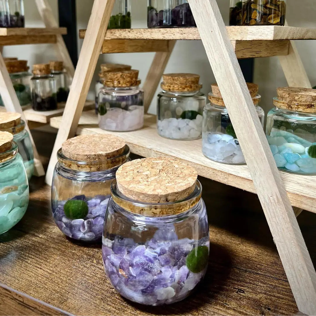Medium Amethyst Gemstones Moss Ball Terrarium