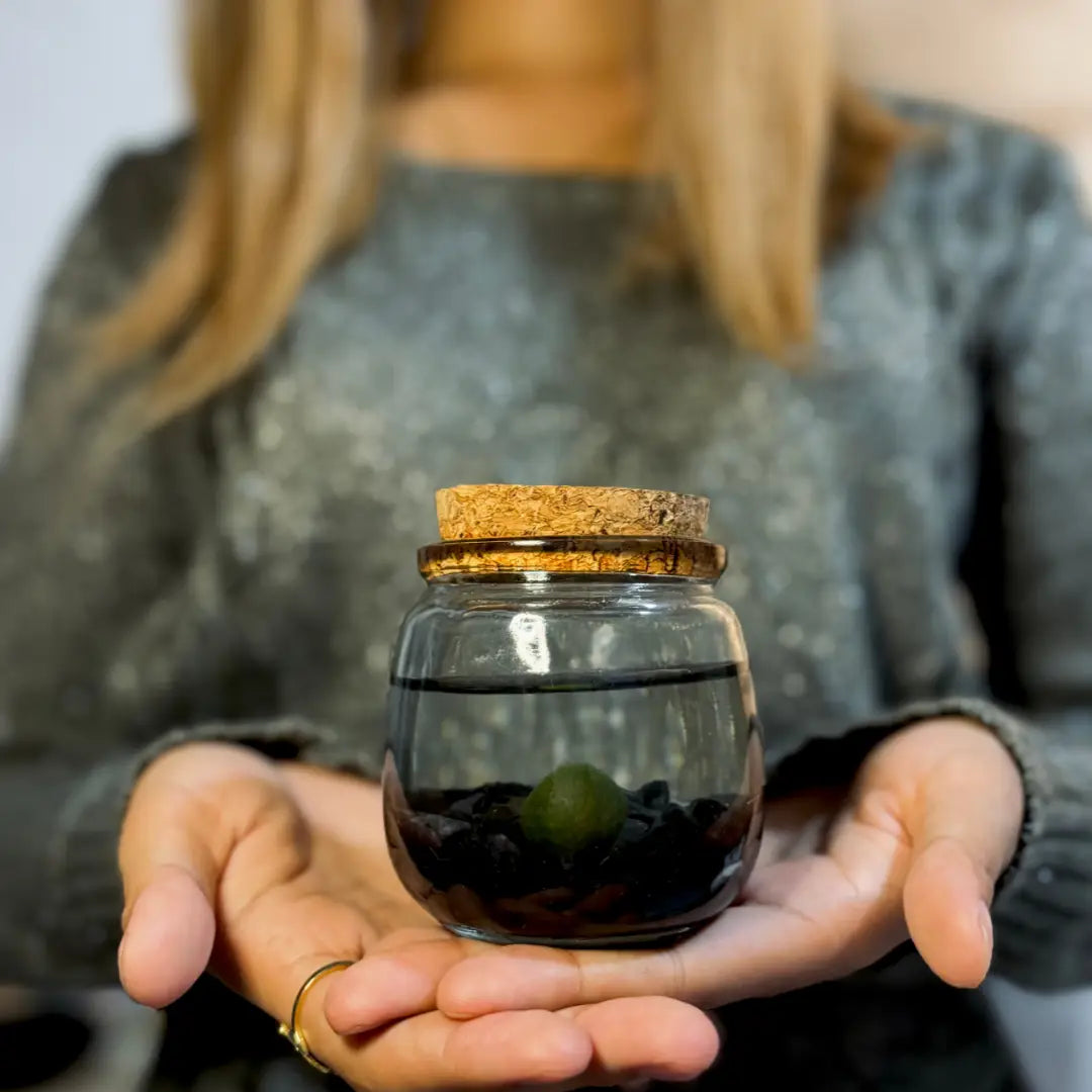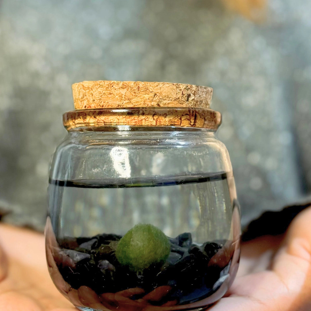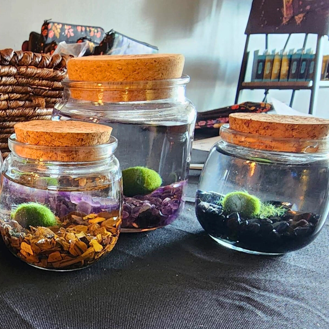 Medium Obsidian Gemstones Moss Ball Terrarium