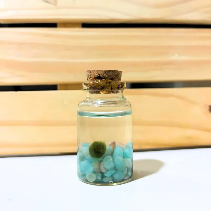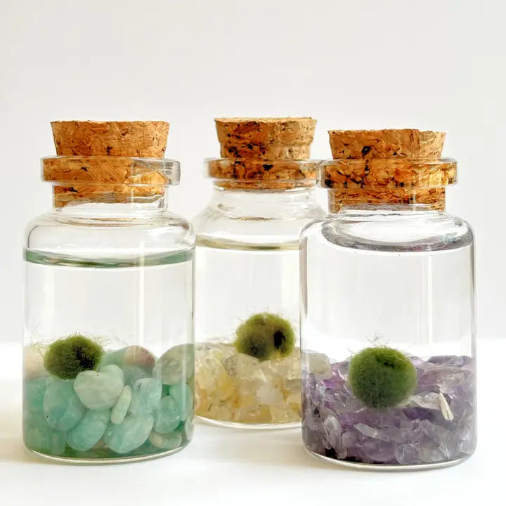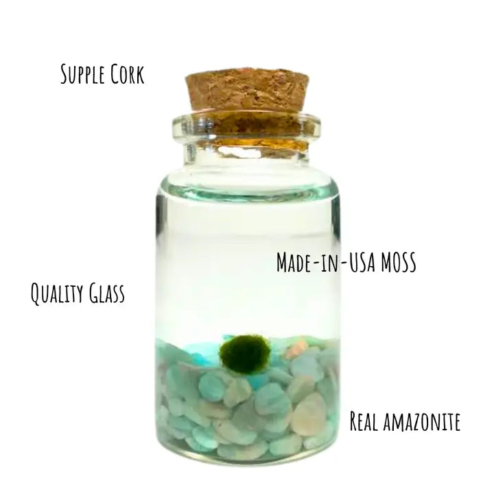 Tiny Amazonite Gemstones Moss Ball Terrarium