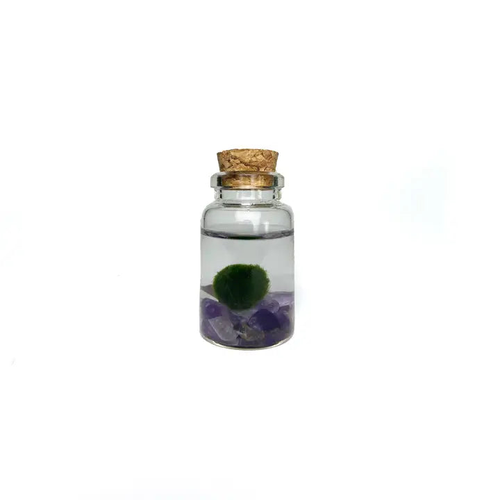 Tiny Amethyst Gemstones Moss Ball Terrarium