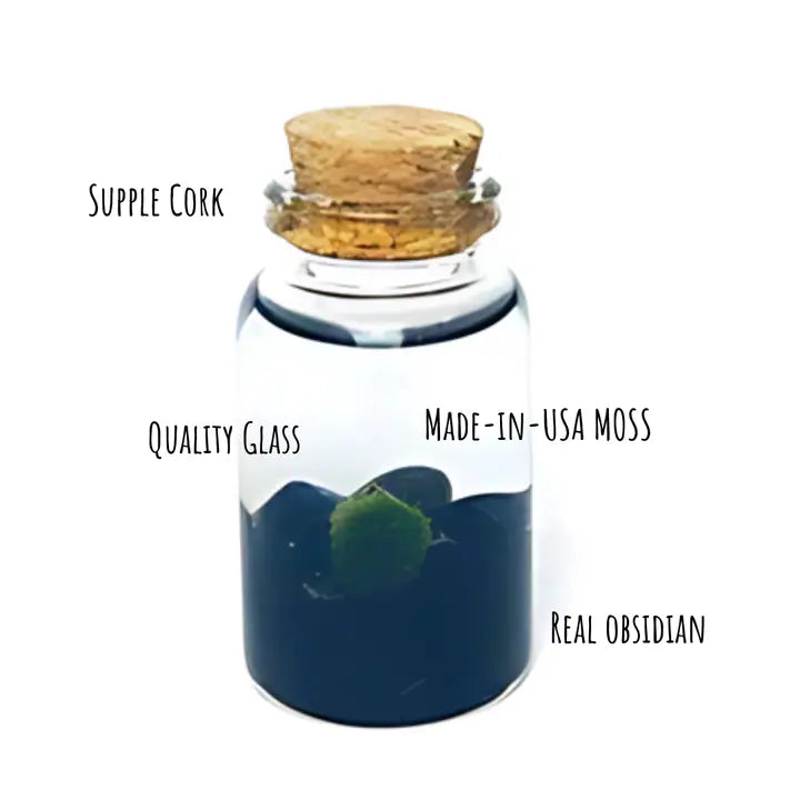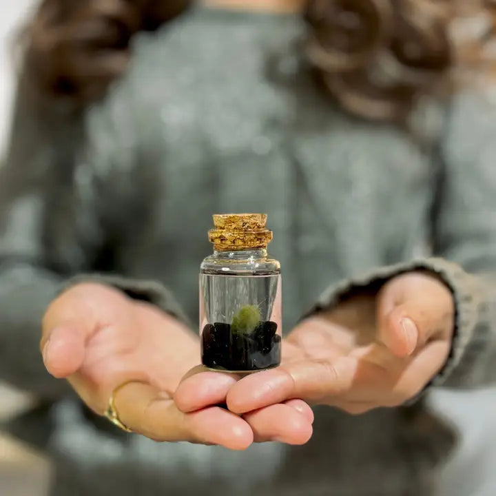 Tiny Obsidian Gemstones Moss Ball Terrarium