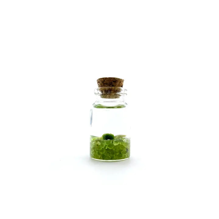 Tiny Peridot Gemstones Moss Ball Terrarium