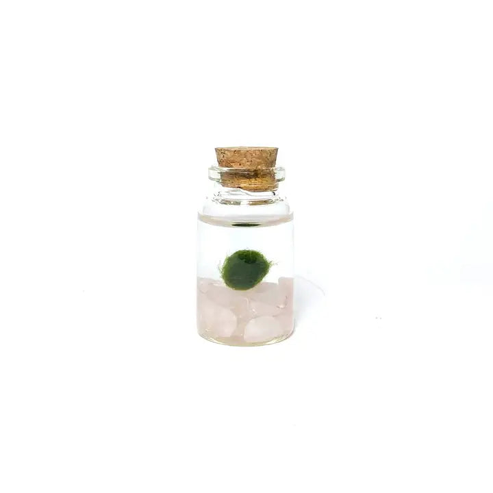 Tiny Rose Quartz Gemstone Moss Ball Terrarium